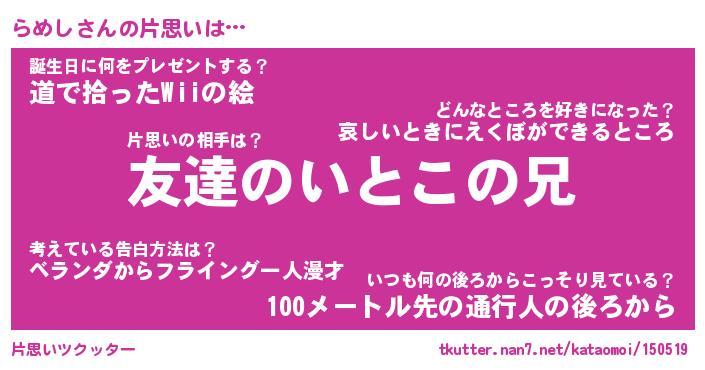 | ヘコむあだ名 | 『らめもー』『牛乳』『らめっちょ』 |