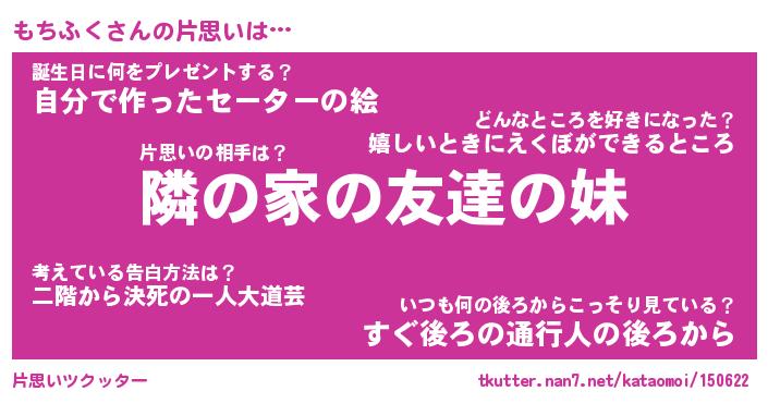 | 意味不明あだ名 | 『ペロリンもちふく』『永久保存もちふく』 |