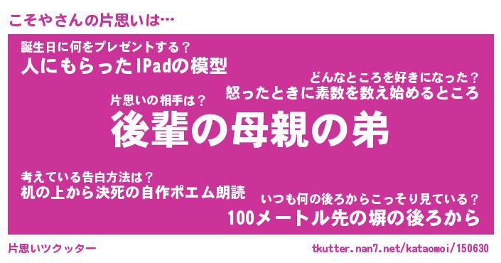 | 自動車の名前っぽいあだ名 | 『コソティマ』『コクア』『コント』 |