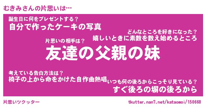 | ヘコむあだ名 | 『むきふぇ~』『牛乳』『むき太郎』 |