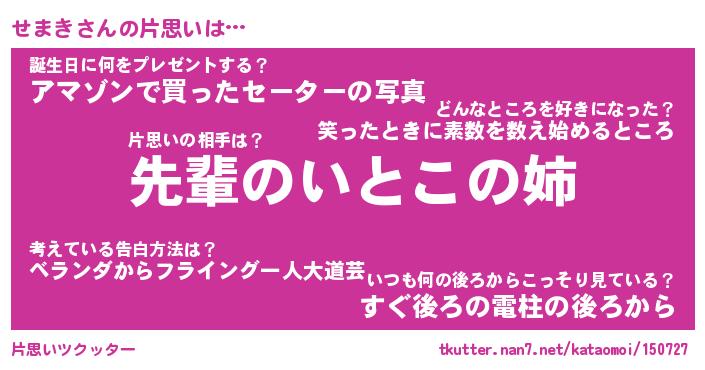 | ヘコむあだ名 | 『せまもー』『つくし』『せまぷりん』 |