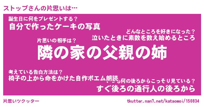 | 男性向けラノベタイトル風あだ名 | 『ストップの憂鬱』 |