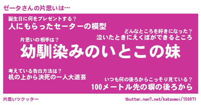 | 男性向けラノベタイトル風あだ名 | 『ゼータの憂鬱』 |