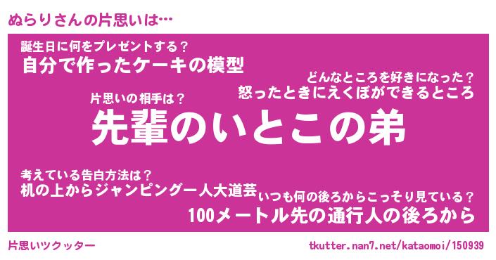 | ヘコむあだ名 | 『ぬらもー』『つくし』『ぬらっぺ』 |