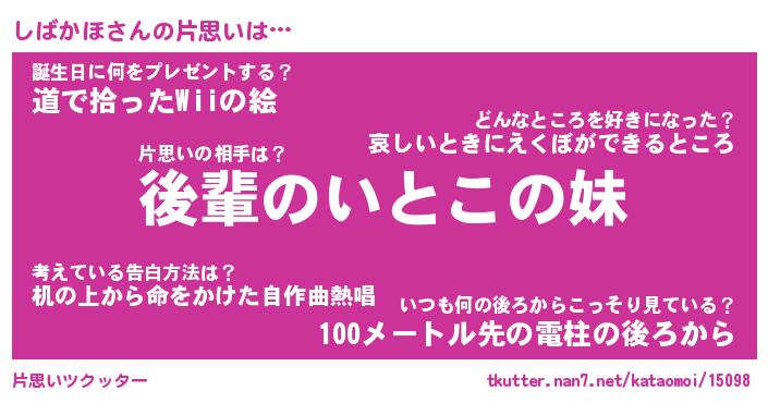 | ヘコむあだ名 | 『しばにゅー』『豆乳』『しばを』 |