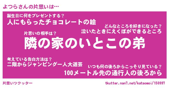 | 2回繰り返すあだ名 | 『よつよつ』『よよつつ』『ぬるぬる』 |