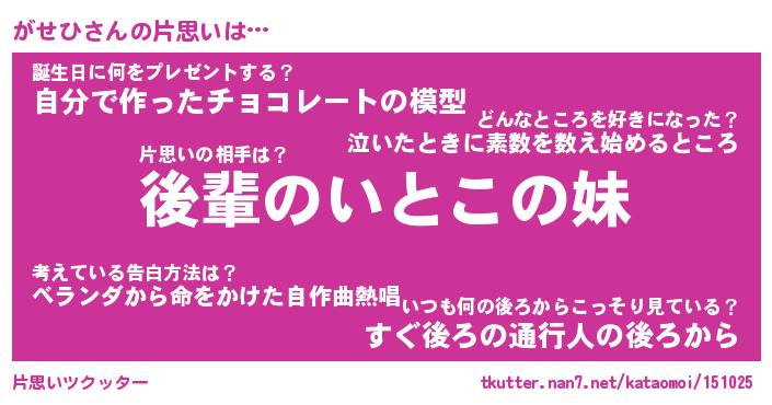| ヘコむあだ名 | 『がせもー』『なまこ酢』『がせ太郎』 |