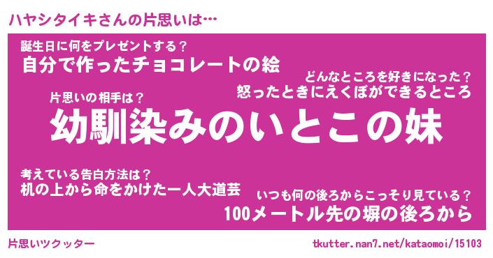 | 男性向けラノベタイトル風あだ名 | 『ハヤシタイキの憂鬱』 |