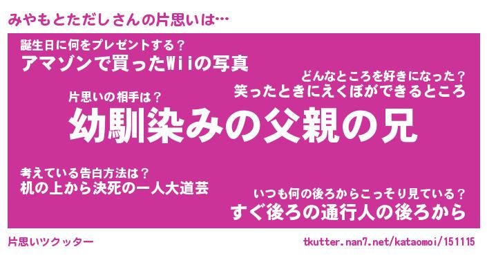 | ヘコむあだ名 | 『みやにゅー』『つくし』『みやお』 |