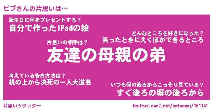 | ヘコむあだ名 | 『ビブにー』『つくし』『ビブぷりん』 |