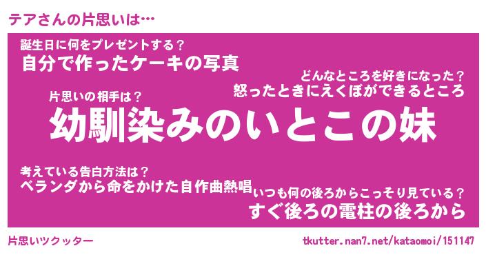| ヘコむあだ名 | 『テアもー』『つくし』『テア太郎』 |