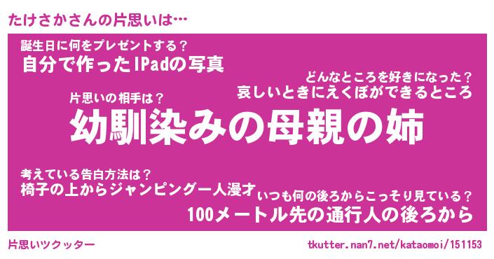 | ヘコむあだ名 | 『たけにー』『つくし』『たけお』 |
