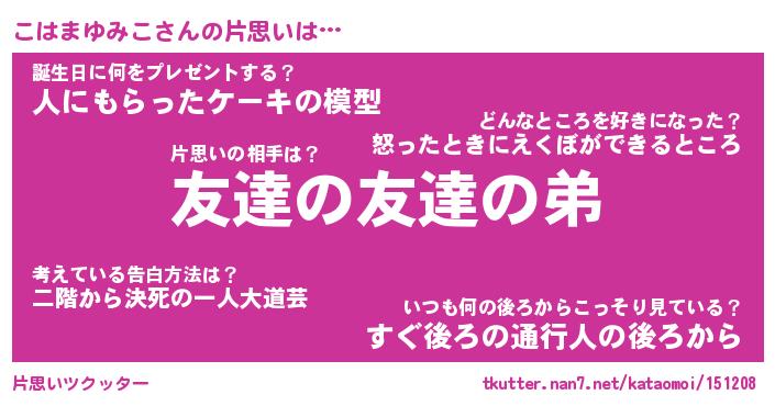 | 伝説のあだ名 | 『封印されしスナイパーこはまゆみこ』 |