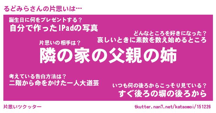 | ヘコむあだ名 | 『るどふぇ~』『豆乳』『るどお』 |