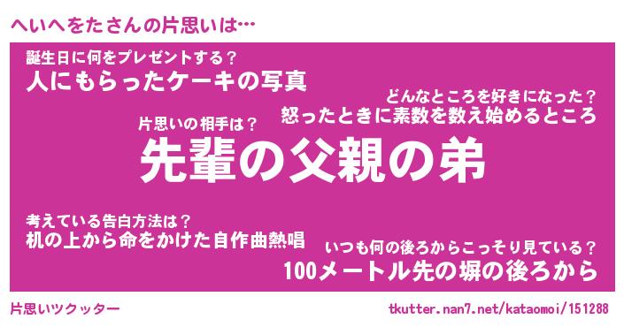 | 胡散臭い通販商品みたいなあだ名 | 『モテモテ間違いなし水晶球…その名も「へいへをた」』 |