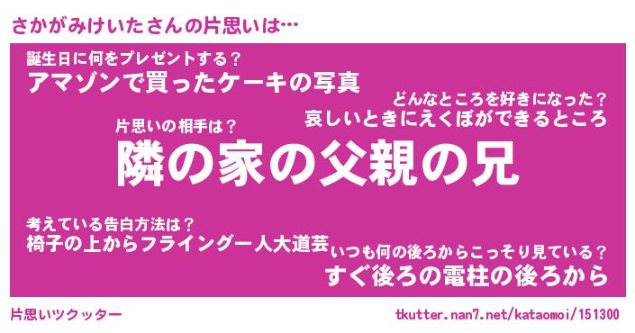| 胡散臭い通販商品みたいなあだ名 | 『必ず成功する水晶球…その名も「さかがみけいた」』 |