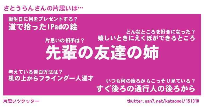 | 男性向けラノベタイトル風あだ名 | 『さとうらんの憂鬱』 |