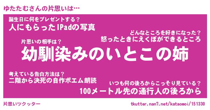 | 女子向けラノベタイトル風あだ名 | 『(仮)ゆたたむのやんごとなき事情』 |