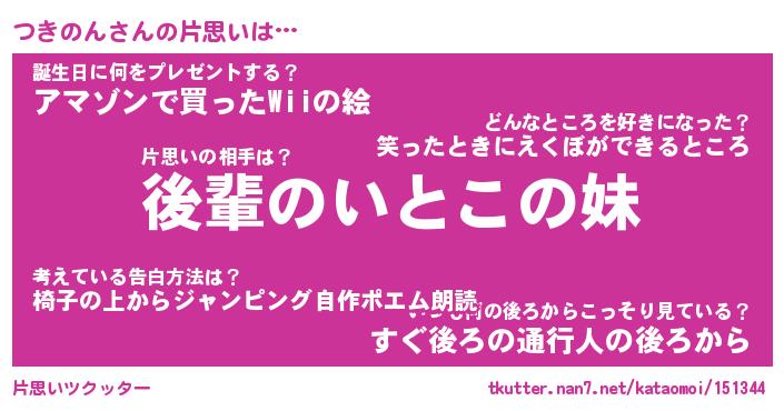 | ヘコむあだ名 | 『つきにゅー』『なまこ酢』 |