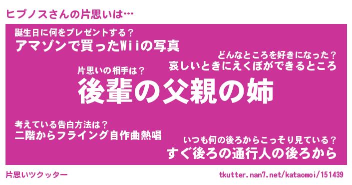| ヘコむあだ名 | 『ヒプふぇ~』『なまこ酢』『ヒプお』 |
