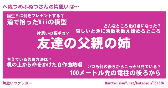 | 胡散臭い通販商品みたいなあだ名 | 『億万長者になれる水晶球…その名も「へぬつめふぬつ」』 |