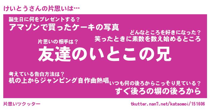 | ヘコむあだ名 | 『けいもー』『なまこ酢』『けいっ子』 |