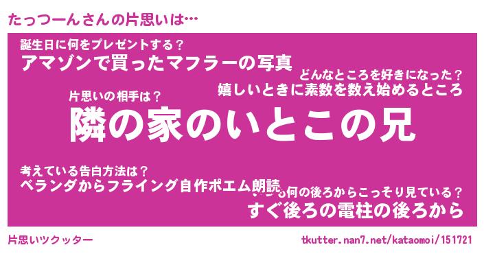 | ヘコむあだ名 | 『たっもー』『なまこ酢』『たっを』 |
