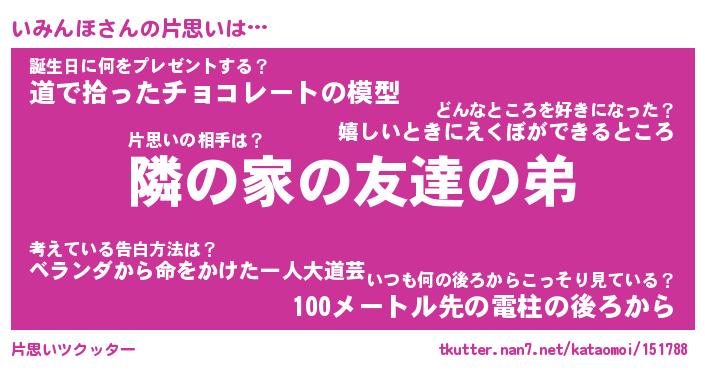 | 胡散臭い通販商品みたいなあだ名 | 『必ず成功する霊験あらたかなお札…その名も「いみんほ」』 |