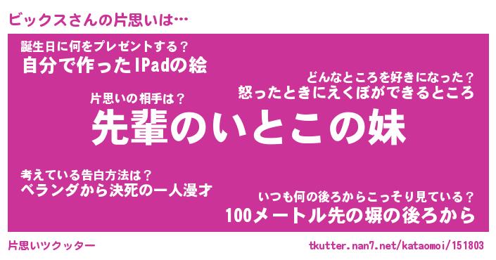 | 胡散臭い通販商品みたいなあだ名 | 『モテモテ間違いなし水晶球…その名も「ビックス」』 |