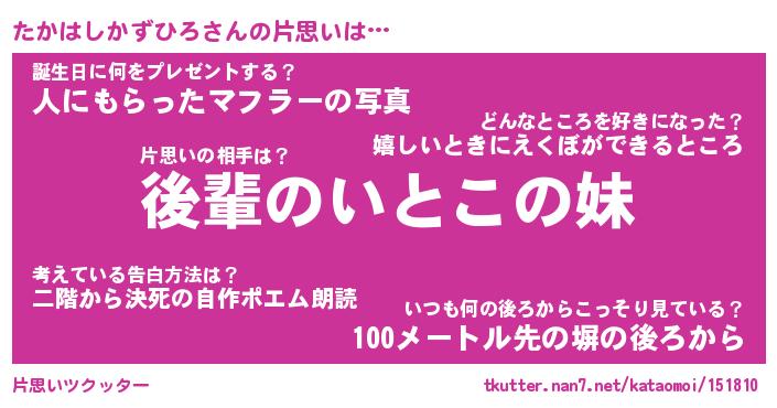 | 胡散臭い通販商品みたいなあだ名 | 『モテモテ間違いなし水晶球…その名も「たかはしかずひろ」』 |