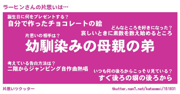 | 女子向けラノベタイトル風あだ名 | 『(仮)ラーヒンのやんごとなき事情』 |