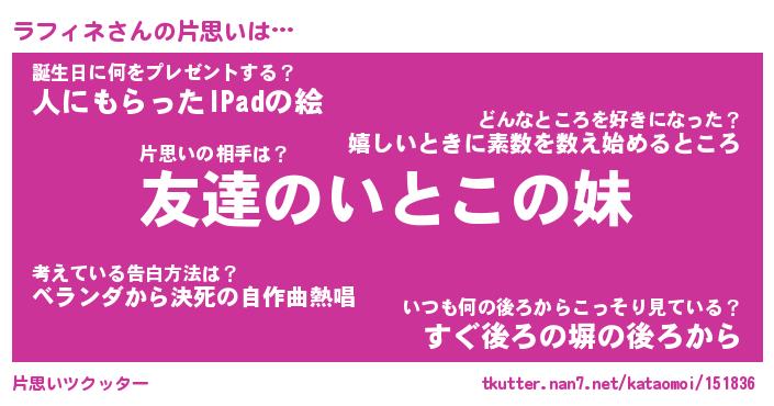 | ファンタジー風あだ名 | 『ラフフェル』『エターナルラフィネー』 |