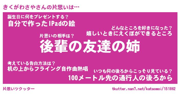 | 伝説のあだ名 | 『封印されしスナイパーきくがわさや』 |