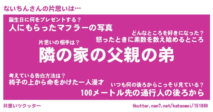 | 男性向けラノベタイトル風あだ名 | 『ないちんの憂鬱』 |
