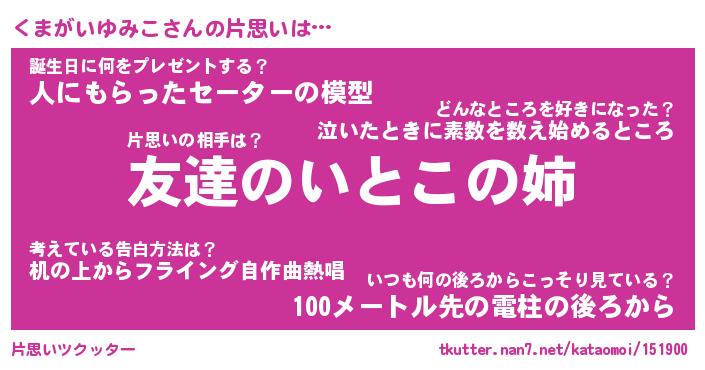 | 胡散臭い通販商品みたいなあだ名 | 『億万長者になれる霊験あらたかなお札…その名も「くまがいゆみこ」』 |