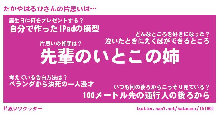 | 胡散臭い通販商品みたいなあだ名 | 『モテモテ間違いなし水晶球…その名も「たかやはるひ」』 |
