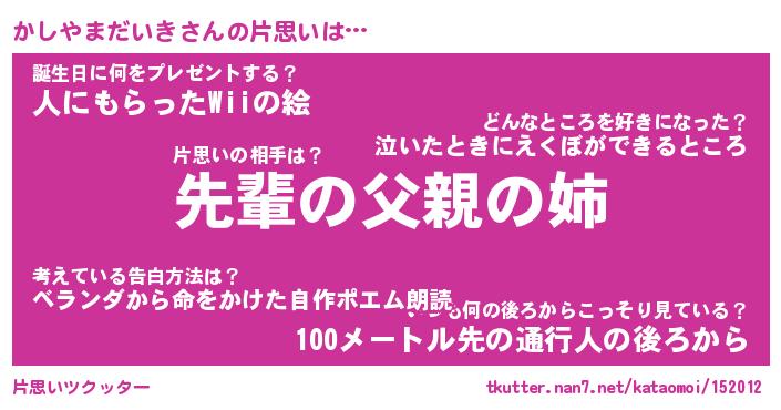 | 胡散臭い通販商品みたいなあだ名 | 『モテモテ間違いなし水晶球…その名も「かしやまだいき」』 |