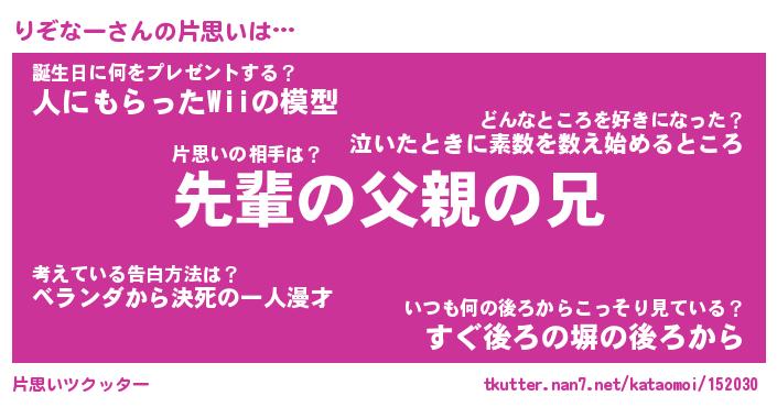 | ヘコむあだ名 | 『りぞふぇ~』『つくし』『りぞっ子』 |