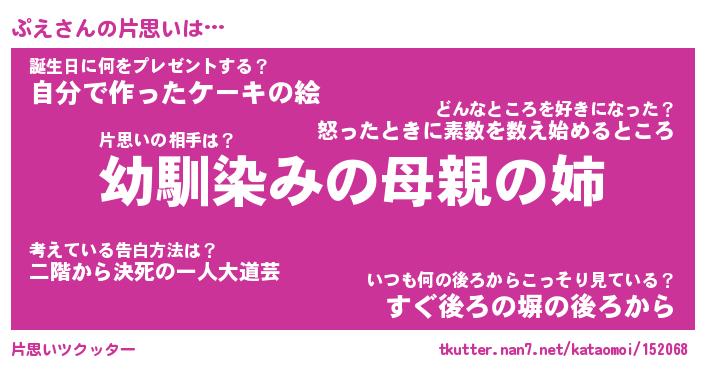 | ヘコむあだ名 | 『ぷえにー』『牛乳』『ぷえを』 |