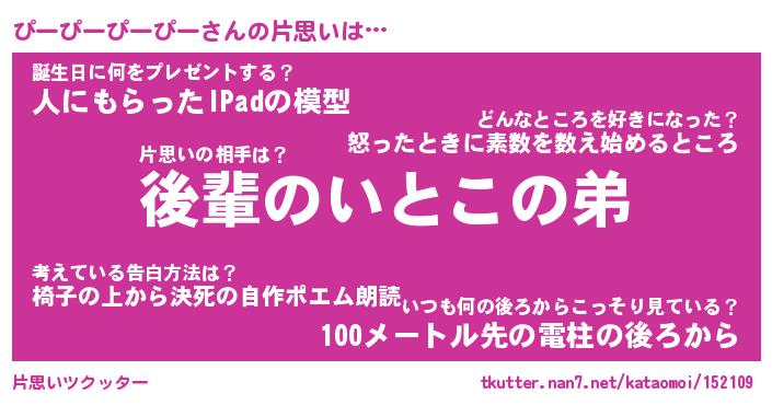 | ヘコむあだ名 | 『ぴーにゅー』『牛乳』『ぴーを』 |
