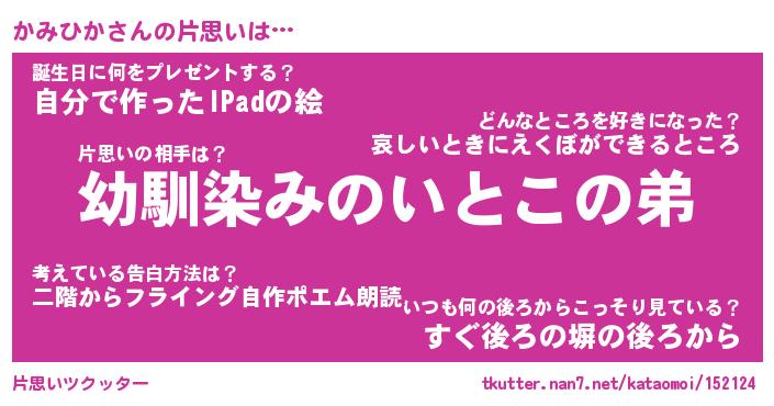 | 男性向けラノベタイトル風あだ名 | 『かみひかの憂鬱』 |