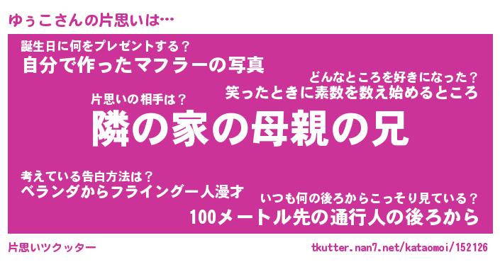 | ヘコむあだ名 | 『ゆぅにー』『牛乳』『ゆぅを』 |