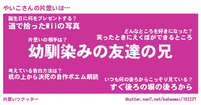 | ヘコむあだ名 | 『やいもー』『豆乳』『やいを』 |