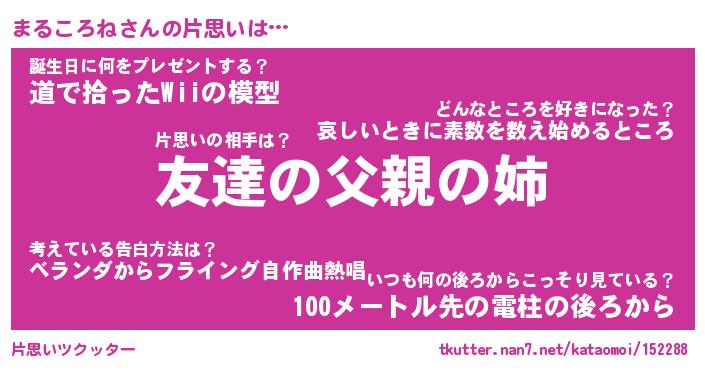 | ヘコむあだ名 | 『まるにゅー』『豆乳』『まるを』 |