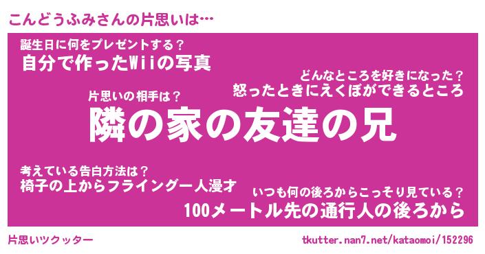 | 胡散臭い通販商品みたいなあだ名 | 『必ず成功する霊験あらたかなお札…その名も「こんどうふみ」』 |