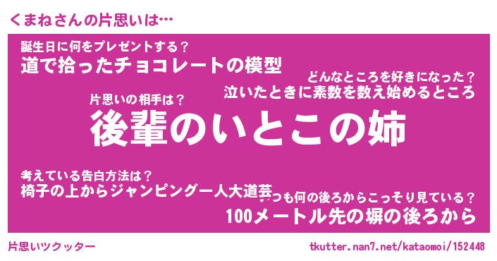 | 自動車の名前っぽいあだ名 | 『クマティマ』『クスラー』『クント』 |