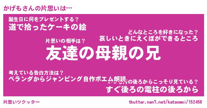 | ヘコむあだ名 | 『かげにー』『なまこ酢』『かげっぺ』 |