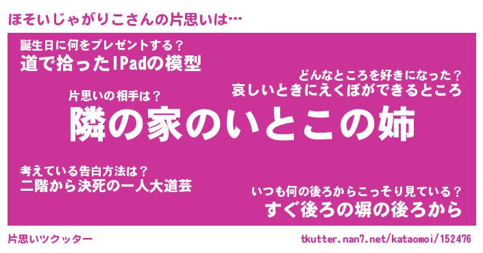 | 胡散臭い通販商品みたいなあだ名 | 『必ず成功する水晶球…その名も「ほそいじゃがりこ」』 |