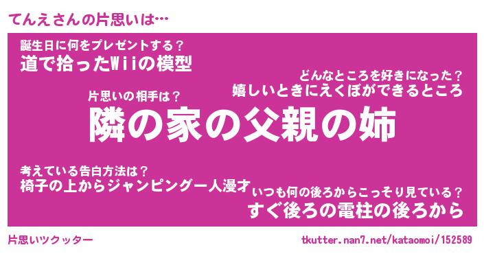 | ヘコむあだ名 | 『てんふぇ~』『豆乳』『てん太郎』 |
