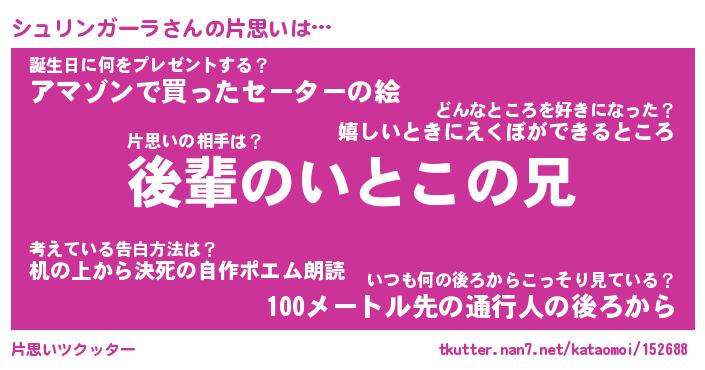| ヘコむあだ名 | 『シュもー』『豆乳』『シュっぺ』 |